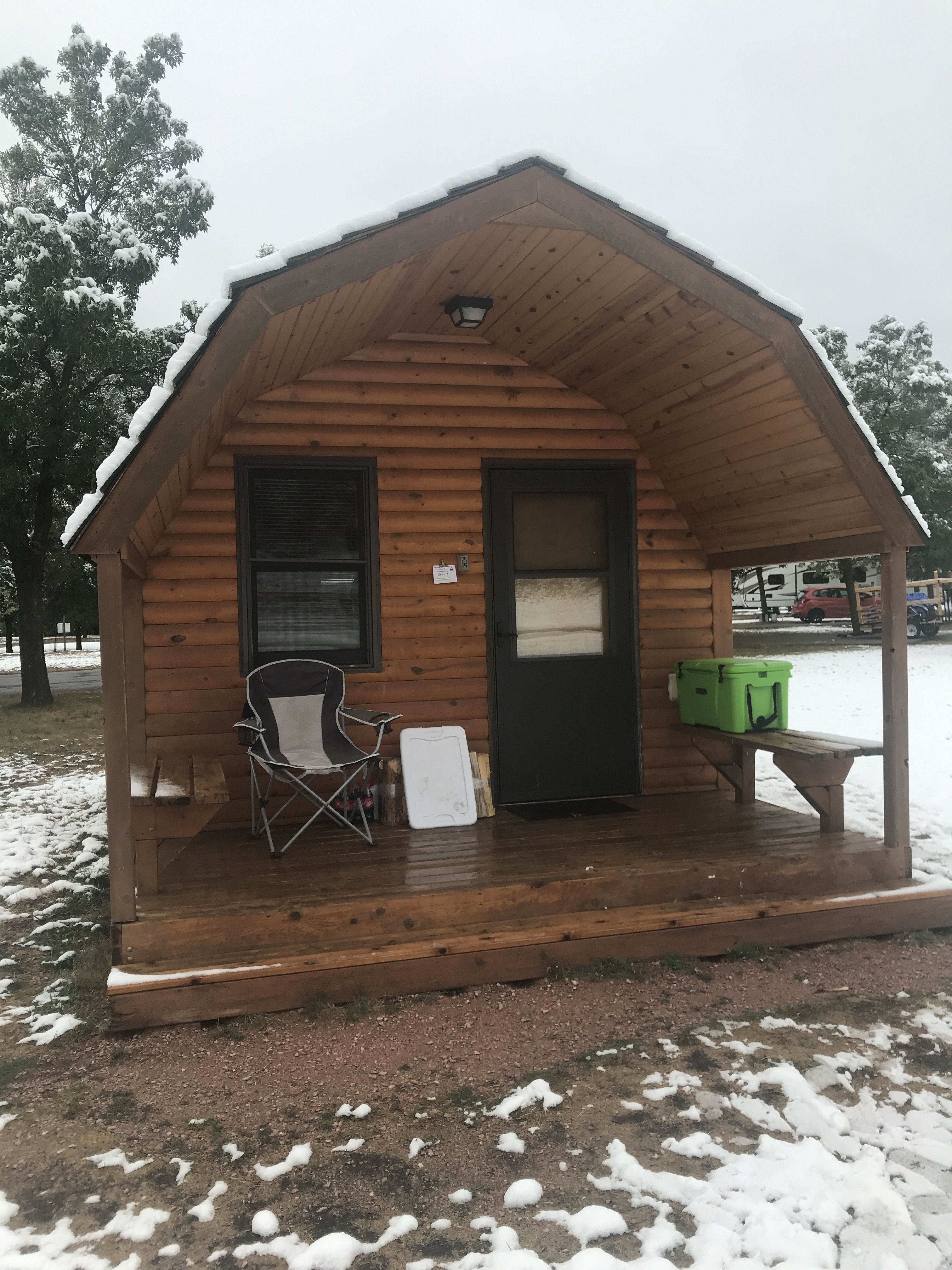 For this leg of the trip we stayed in Custer State Park in one of their cowboy cabins in the game lodge campground. A Cowboy cabin is basically a bare essentials cabin. They often have bunk beds (you need to provide your own bedding) and heat but anything else is a plus. The cabin was very clean. It was nice and cozy with the heat cranked!