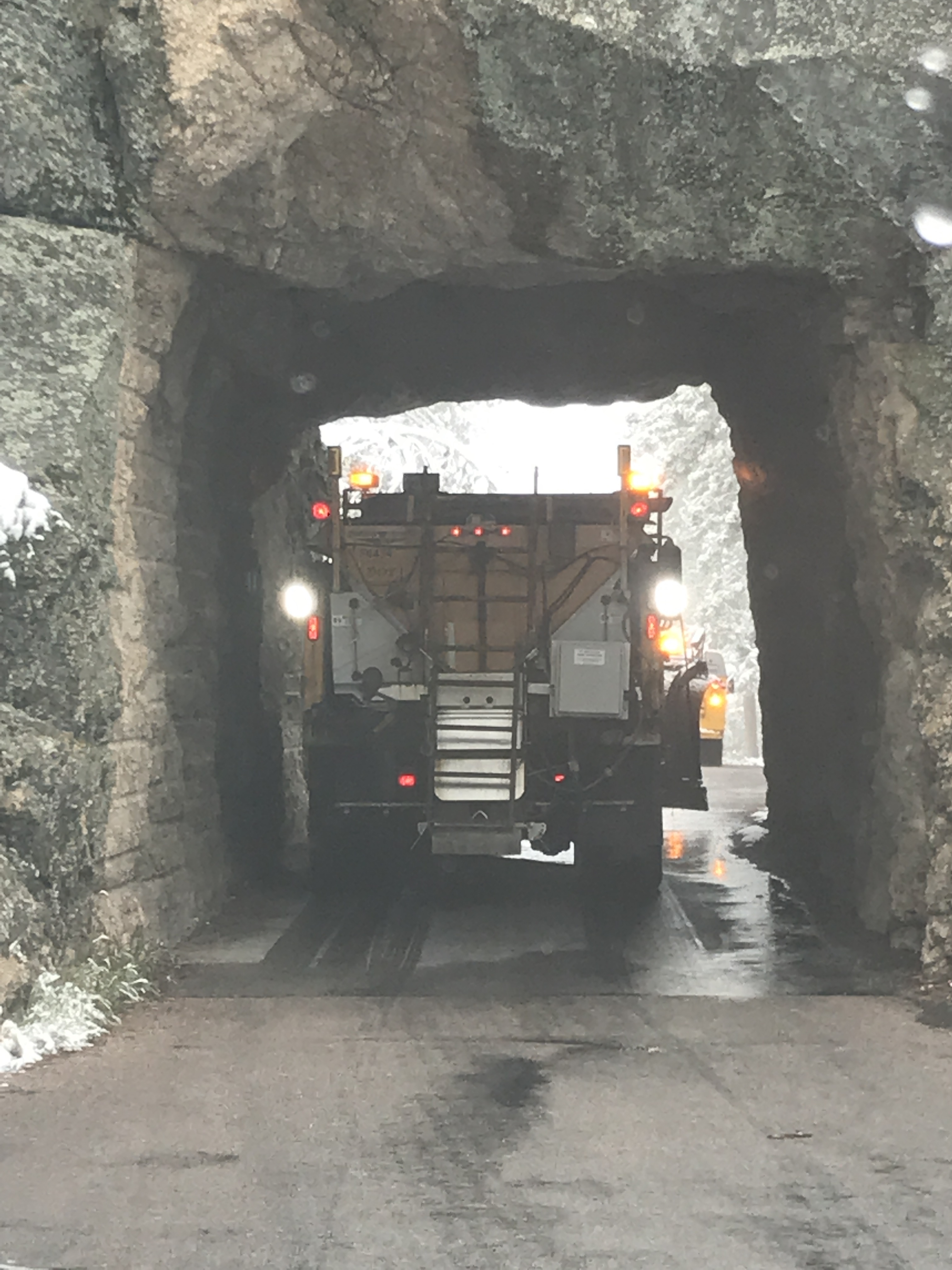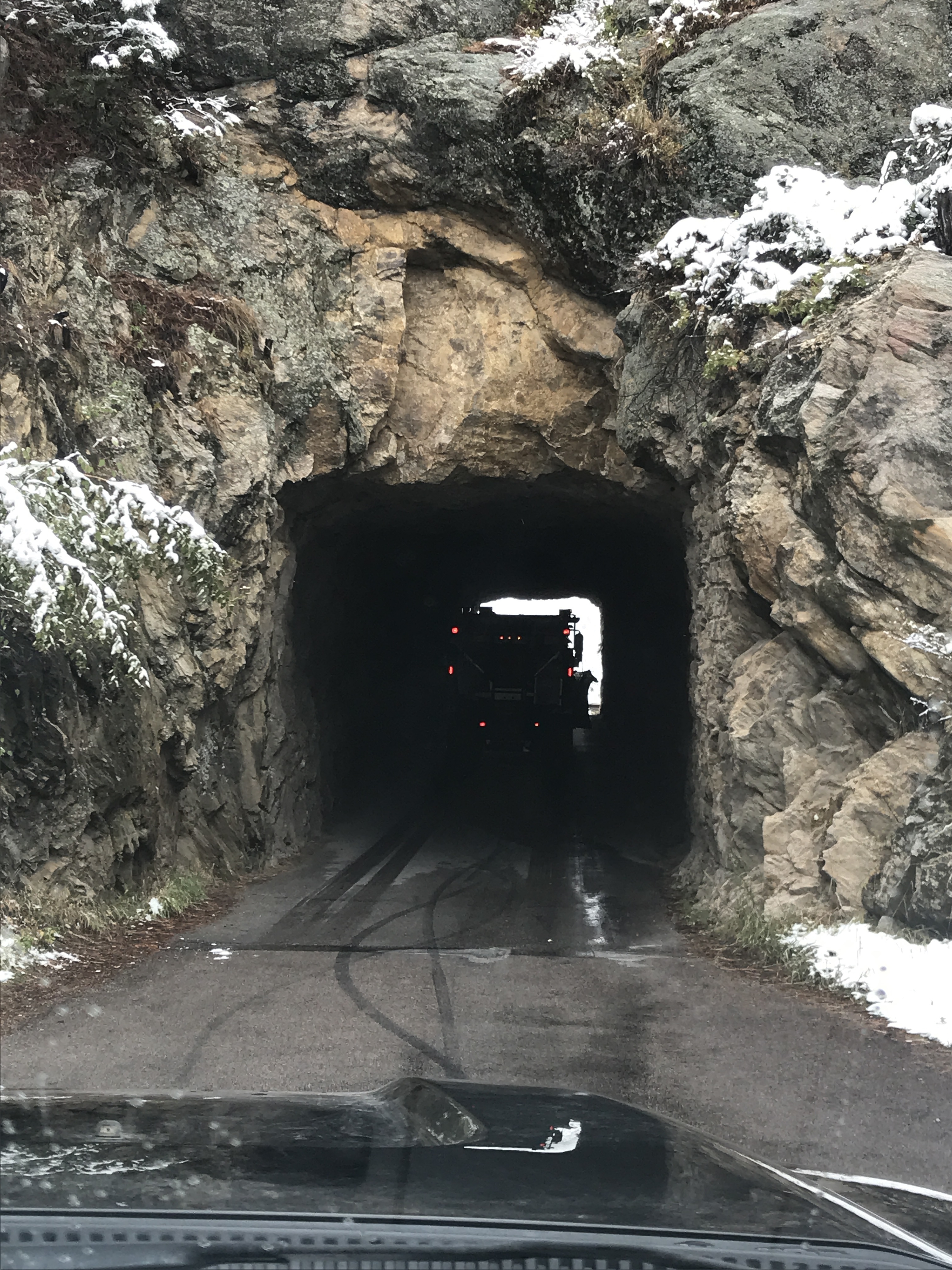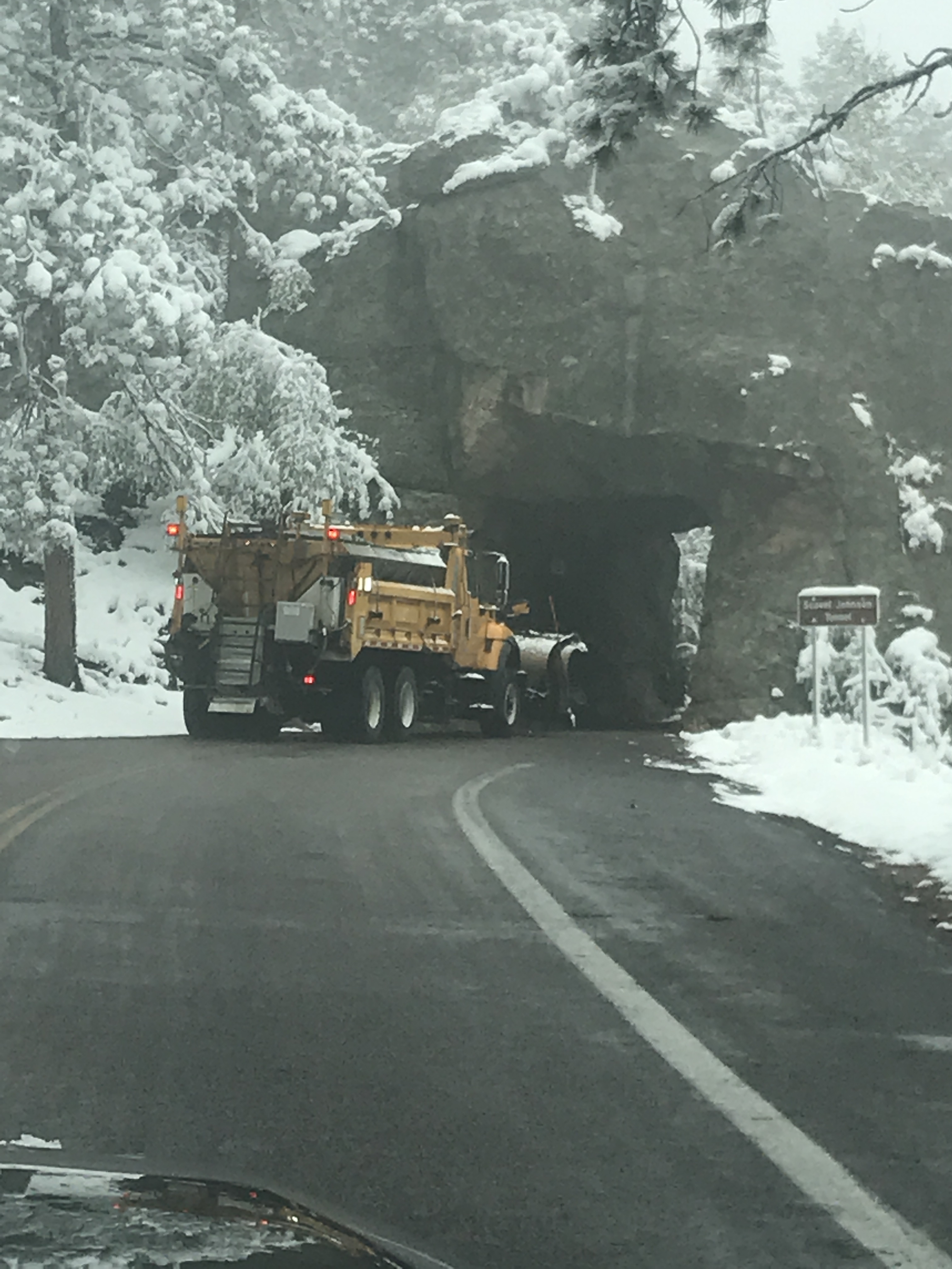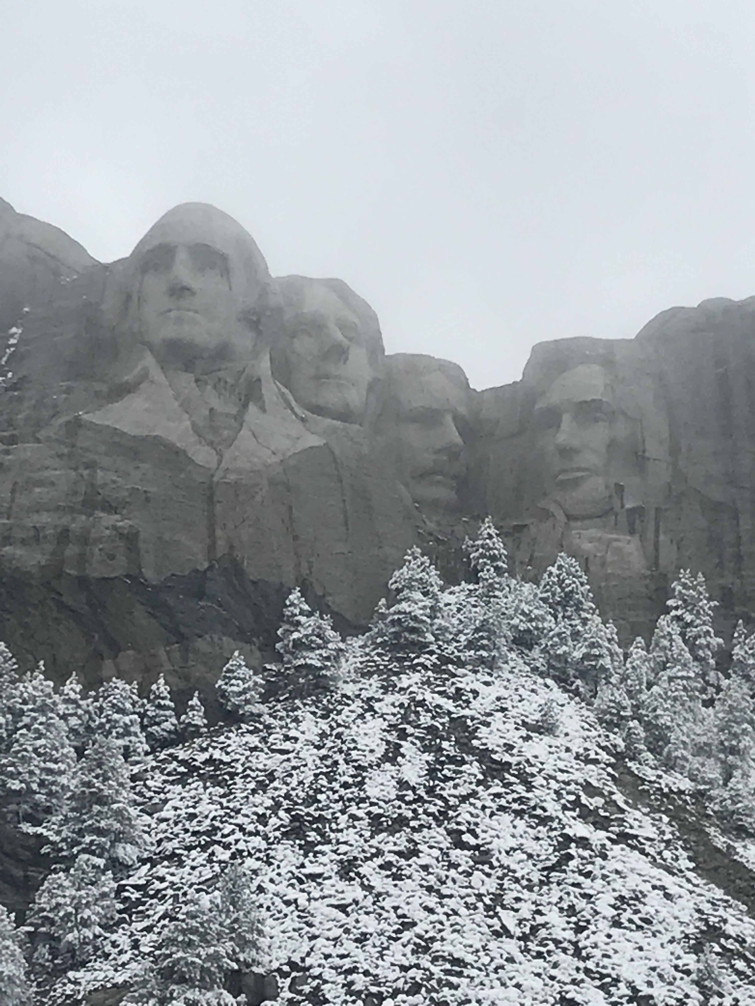 The agenda for the day was to drive around the park exploring and to head to Mt. Rushmore. We took the scenic route to Mt. Rushmore and followed the snow plow most of the way. The fresh snow on top of the black hills was really beautiful to see.